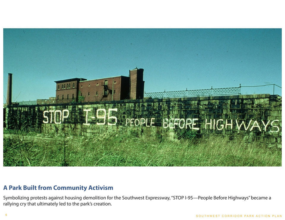 Opened between 1987 and 1990, the SWCP is an iconic civic landscape born from citizen activism that halted a proposed highway and replaced it with an award-winning transit and park system serving diverse communities and uses.